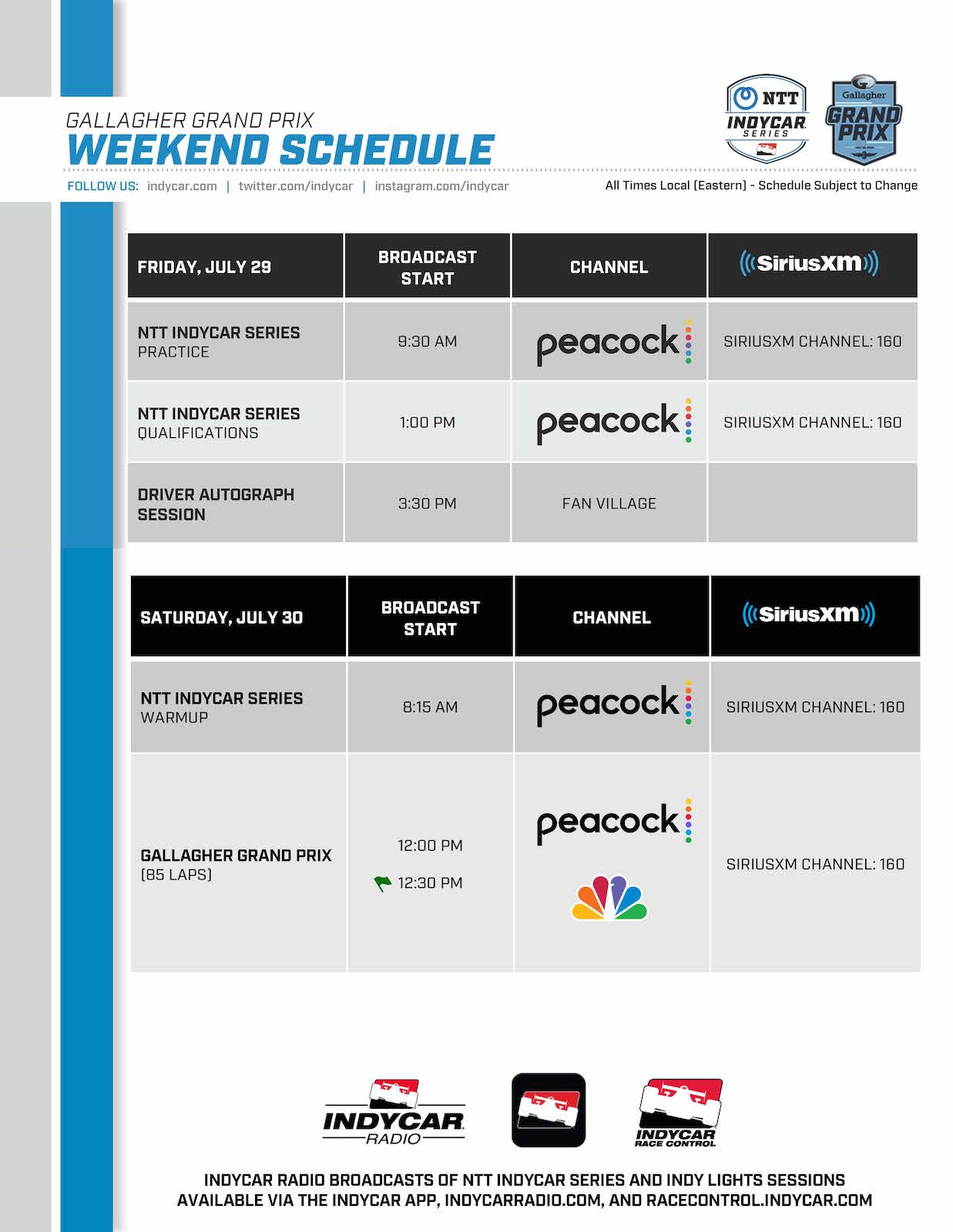 The 2.439-mile, 14-turn road course incorporates portions of Turns 1 and 2 and the frontstraight of the famed Indianapolis Motor Speedway oval and the remainder of the circuit is within the infield, allowing for great spectator viewing.